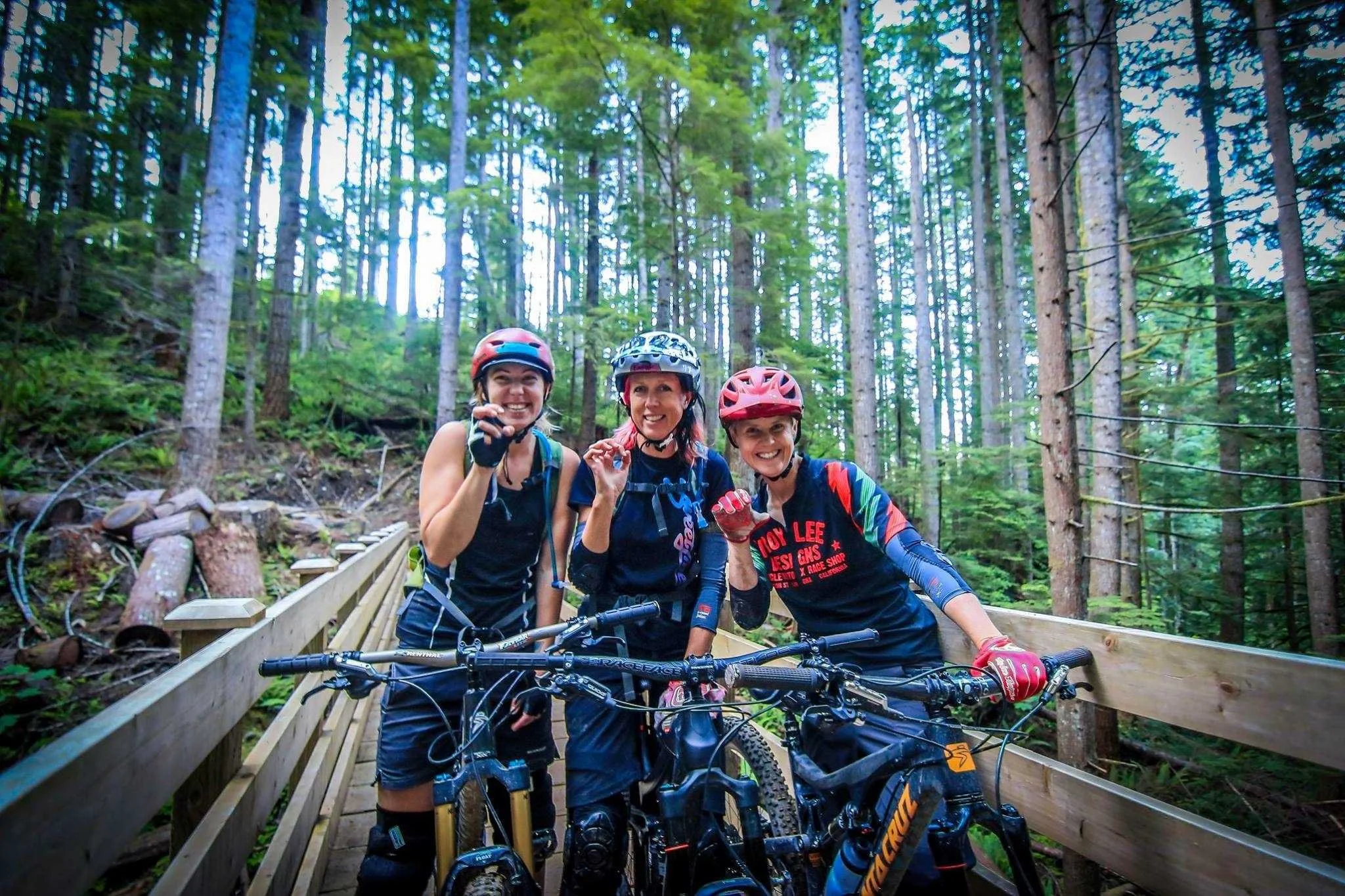 Atlas is a long and technical trail with few line options. Therefore, each feature is one you’ll want to master. We will break down the trail into smaller chunks and then session trickier moves or combos. Demos and “tow-ins” will be available to help. We will work with riders on proper body position and technique and sequence features and skills to help build confidence. (Note: we have a plan to allow for different climbing speeds to the top of the trail.)